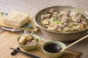 滋賀県産の豆腐に具材とだしのうま味がしみ込んだ、すき焼き風の郷土料理。