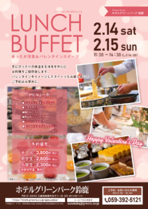 【ホテルグリーンパーク鈴鹿】「ランチビュッフェ ~あったか洋食&バレンタインスイーツ~」を開催