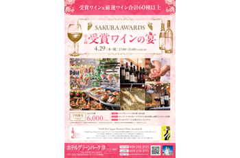 【ホテルグリーンパーク津】SAKURA AWARDS「受賞ワインの宴」開催 プレスリリースワインイベントチラシ 投稿日2026年3月19日 2026.03.19 ~60種類以上のワインを、おひとり様から気軽に楽しめる特別イベント~ 株式会社グリーンズ(本社:三重県四日市市、代表取締役社長:村木雄哉、証券コード:6547)は、2026年4月29日(水・祝)、ホテルグリーンパーク津(三重県津市羽所町)にて、SAKURA AWARDS「受賞ワインの宴」を開催いたします。本イベントでは、SAKURA AWARDS受賞ワインを含む60種類以上のワインを取り揃え、地域の皆さまやご宿泊のお客様に特別なディナータイムをお楽しみいただきます。 会場では、“SAKURA”Japan Women’s Wine Awards受賞ワインをメインに、ホテルシェフ特製のワインに合う料理をご提供します。また、ソムリエによるワイン解説コーナーも設け、ワインを気軽に楽しみたい方から本格的に味わいたい方まで、幅広い皆さまにお楽しみいただけます。 さらに、2026年に三重県が誕生150周年を迎えることを記念し、三重県産ジビエ料理も特別メニューとしてご用意しました。ホテルならではの上質なサービスとともに、ワインと料理のマリアージュをご堪能ください。おひとり様でもグループでも参加しやすい、心豊かなひとときをお届けします。 株式会社グリーンズは、地域に根ざしたホテル運営を通じて、皆さまに魅力ある体験をお届けしてまいります。ぜひこの特別な夜をホテルグリーンパーク津でお楽しみください。 ■イベント概要【開催日】2026年4月29日(水・祝)【時 間】17:00~21:00(ラストオーダー20:30)※途中退出・再入場可【会 場】ホテルグリーンパーク津6階 大宴会場(アスト津内)【アクセス】JR・近鉄「津」駅から徒歩1分(駅直結)【料 金】6,000円(税込)※立食形式【お食事】ワインとのマリアージュを楽しむビュッフェスタイル【お飲み物】ワイン(60種類以上の試飲)/ビール/ウイスキー/ソフトドリンク飲み放題※仕入れ状況により、食材・メニューが変更となる場合がございます。 ■ご予約・お問い合わせホテルグリーンパーク津(アスト津6階)TEL:059-213-2121(宴会専用9:00~18:00)メール:gptsubq@greens.co.jp(宴会専用)URL:https://www.greens.co.jp/gptsu/ ■“SAKURA ”Japan Women’s Wine Awards(サクラアワード)とは 2014年に誕生した、日本の女性が審査する国際的なワインコンペティションです。ソムリエやWESTなどの資格を有する430名の女性審査員が、約4,000アイテムをブラインドテイスティングにより評価します。特に「ワインと和食」「ワインとアジア料理」との相性に着目した審査は、世界的にも高く評価されています。