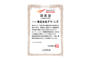 ~健康づくりと働きやすさの両立を目指した継続的な取り組みが評価~  株式会社グリーンズ(本社:三重県四日市市、代表取締役社長:村木雄哉、証券コード:6547)は、2026年3月9日(月)、経済産業省と日本健康会議が共同で